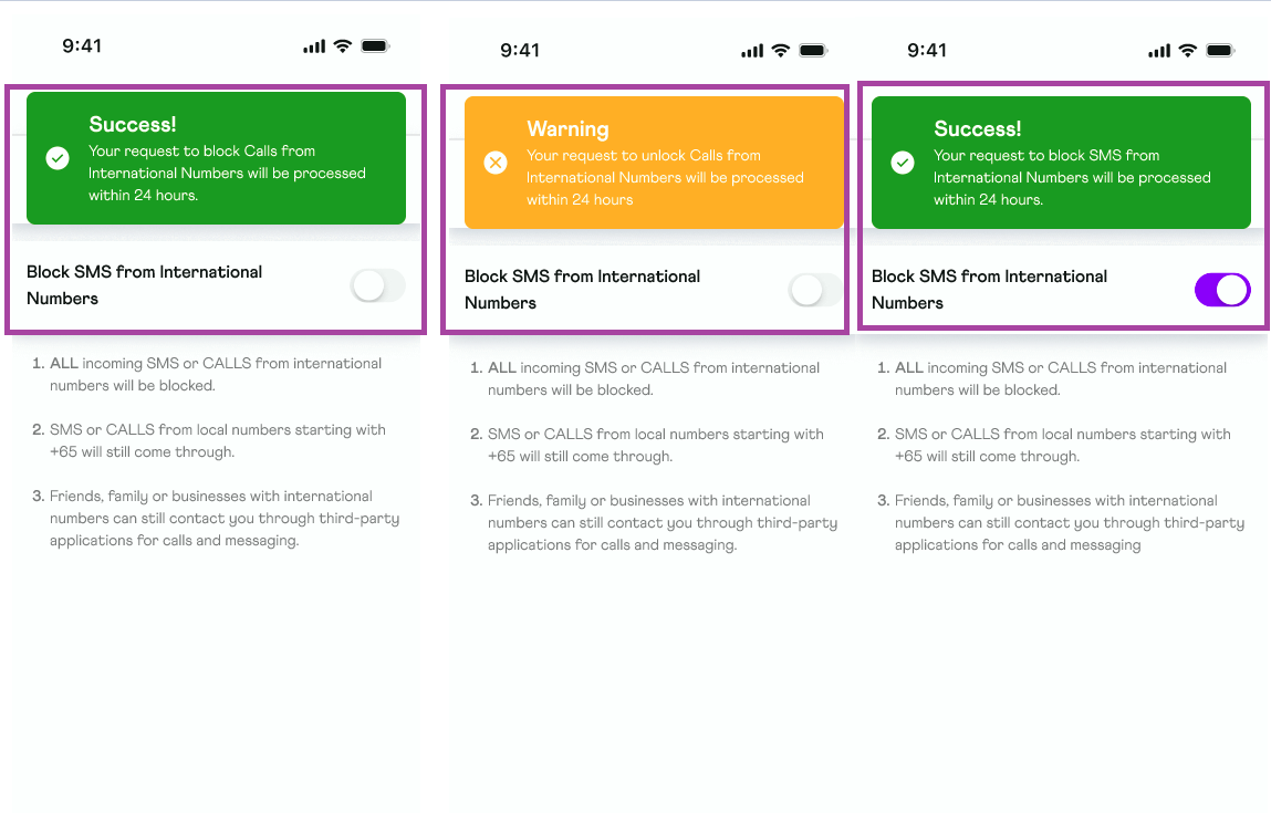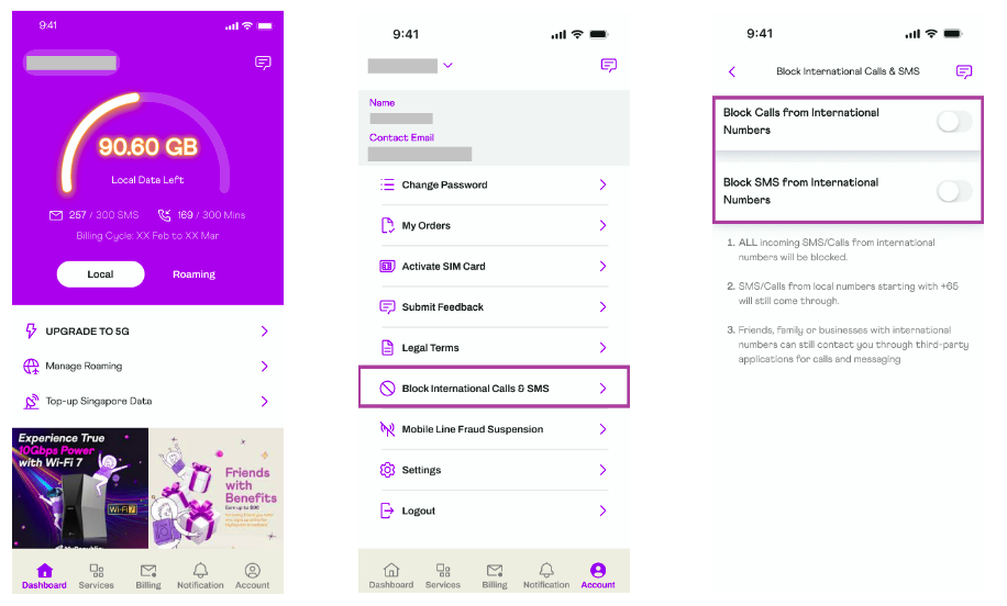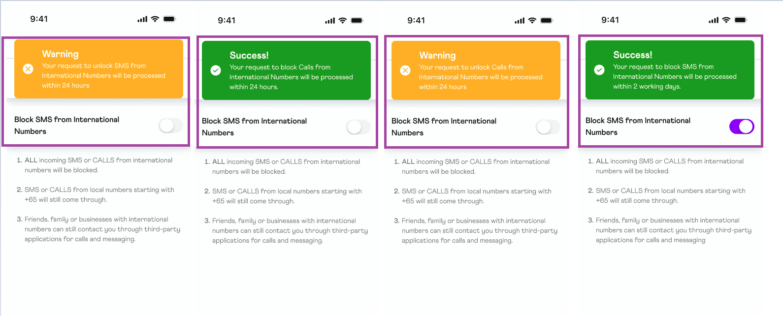 *For 4G customers, international voice calls will be blocked within 24h, and SMSes within 2 working days.