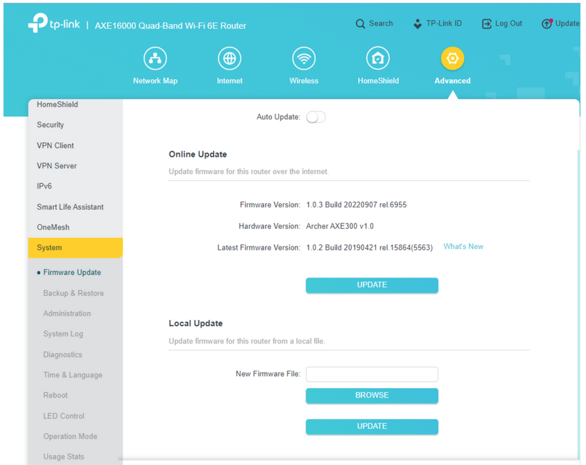 4. Navigate to Advanced > System > Firmware Update.