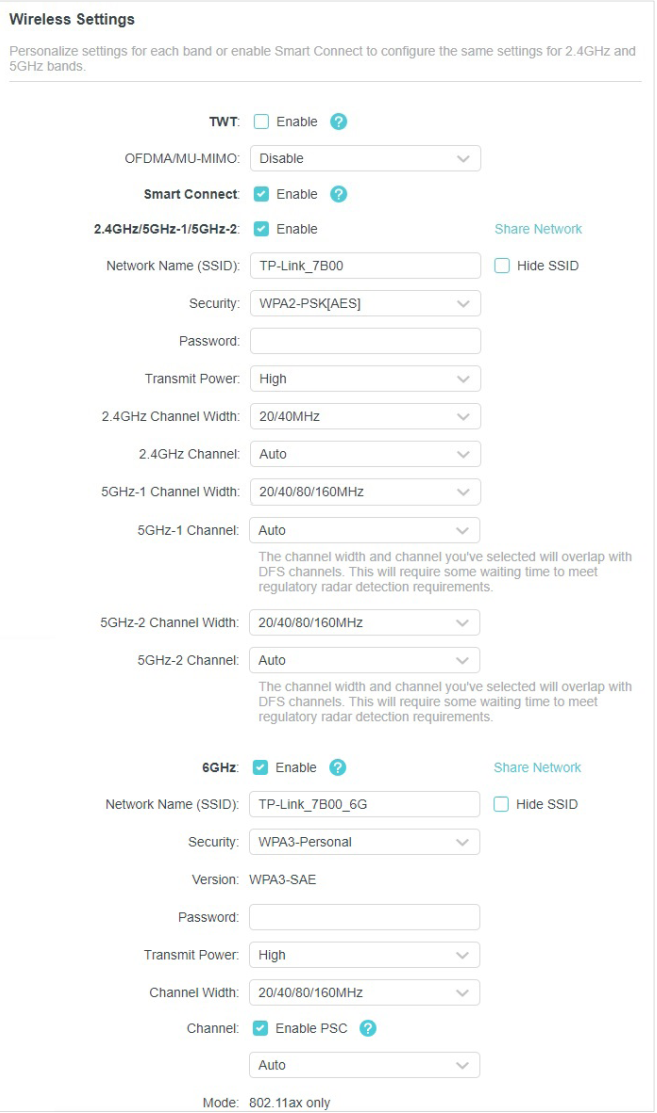Note: Wi-Fi 6E network is compatible only with Wi-Fi 6E enabled devices. Devices without Wi-Fi 6E support will not detect the 6GHz network.