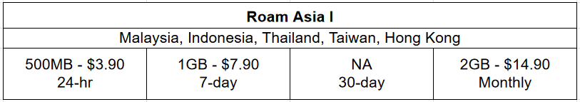 Description: The image above displays the details & inclusions of the 5G Roam Asia I pack.