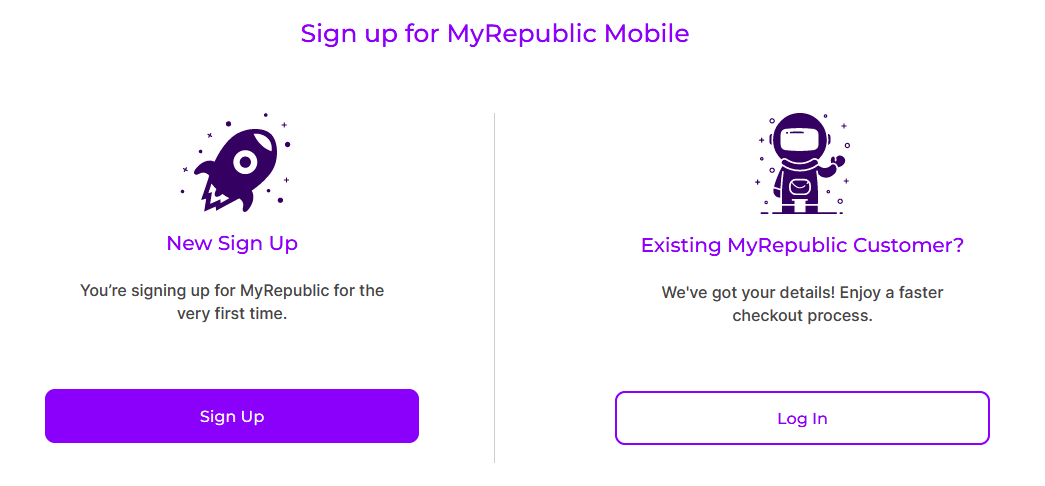 Description: The image above shows the sign in page from the website for new or existing customers who would like to sign up for MyRepublic mobile service.