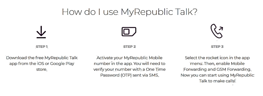 Simply forward your MyRepublic Mobile number to the MyRepublic Talk app and enjoy: