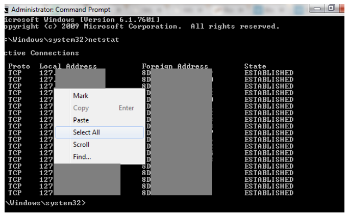 Description: The image above displays the "cmd" screen where the "netstat" command can be initiated.