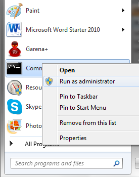 If you're unable to find the game server IP using Resource Monitor, then you'll have to use Command Prompt. Type "command" in windows search, right click the program and select "Run as administrator".
