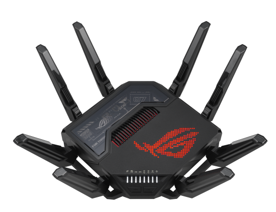 Description: The image above displays the front/top view of a ROG Rapture GT-BE25000 router.