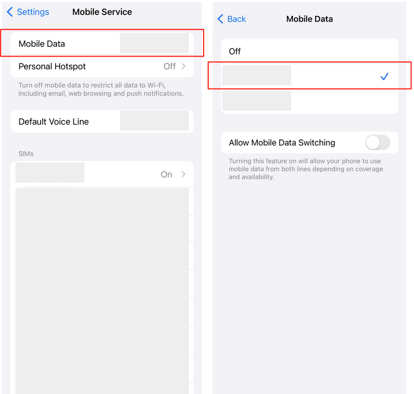 5. On your Settings app, go to Mobile Service and enable “Turn On This Line” and “Data Roaming” to ensure you are connected.